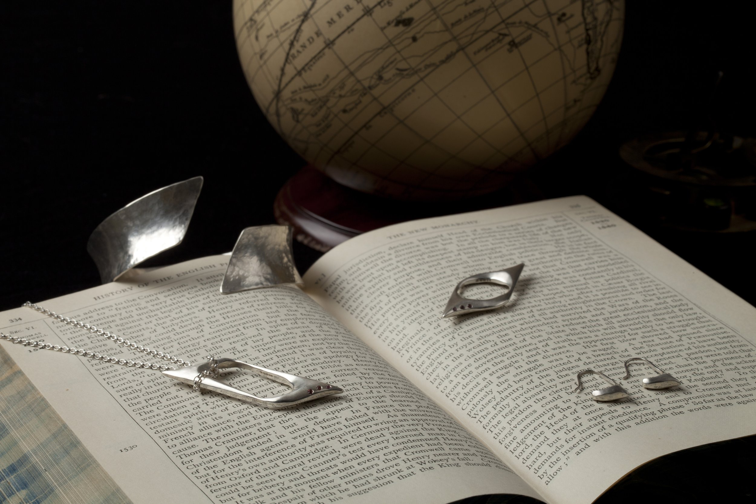 The Longboat Collection takes inspiration from the Vikings, particularly the idea of the journey of the warrior to an unknown land inspired by the shape, form and lines of the longboats, and the idea of each piece being a precious object of buried treasure… Materials are carefully chosen to reflect those used in jewellery at the time including silver and garnets.